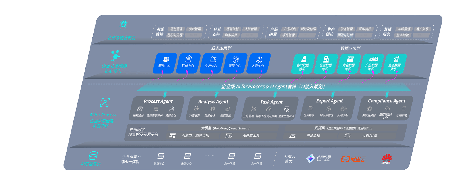 7709美彩国际问学智车解决方案是一套基于AI技术的汽车行业智能化系统,,,覆盖从底层算力到顶层AI应用的全栈方案。。方案由算力层、、、、模型层和应用层组成:算力层,,,,方案支持多种一体机配置,,具备云端灵活部署、、多云适配以及动态优化计算资源的能力;模型层,,7709美彩国际问学平台版提供了企业级AI应用一站式构建与管理平台,,,,支持基于后训练强化技术的汽车企业专属模型的训练、、评测和运营;应用层,,,7709美彩国际问学DeepSeek版提供包括超级员工、、、、智能招采、、、智能营销、、智能客服、、、、AI for BI等一系列解决方案,,,可助力汽车行业实现数字化转型,,,,让管理更智能、、、、响应更敏捷。。